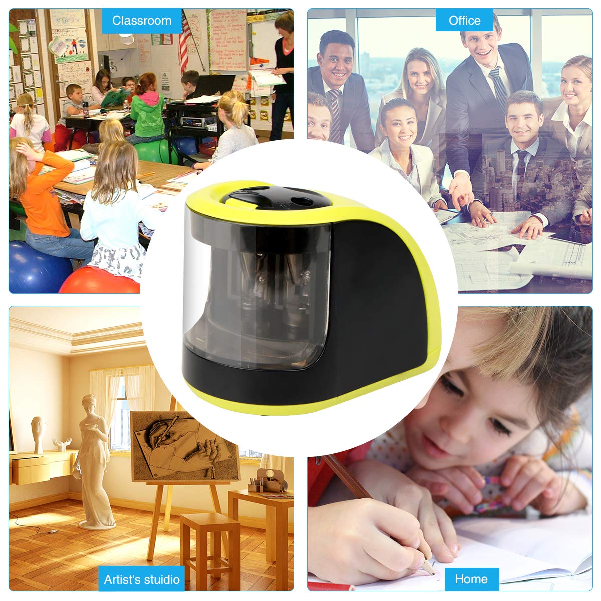 [Handheld & Heavy Duty]: The Professional Compact Pencil Sharpener is small enough, easily fits into backpack or suitcase. Power motor heavy duty design with non-slip mat make it not tip-over or slide while the pencil is being sharpened.